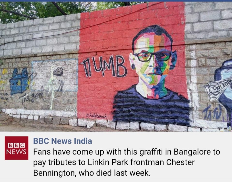 This artwork in the street of Koramangala, is a trbute to late Chester Bennington the legend. You were such an inspiration to all of us growing up listening to music